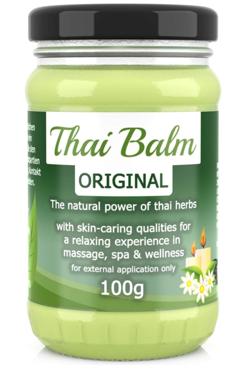Dieser pflegender Massage-Balsam wird in der klassischen Thai Massage angewendet. Mit typischen thai Kräutern wie Kampfer, Cajeput-Öl. Aber auch in verschiedenen Gerüchen wie Lavendel, Rose und Zitronengras erhältlich.